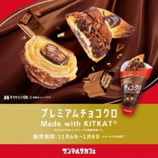 「キットカット」のサクッサク食感と、生クリーム配合の濃厚ホットチョコの組み合わせがたまらない一品。